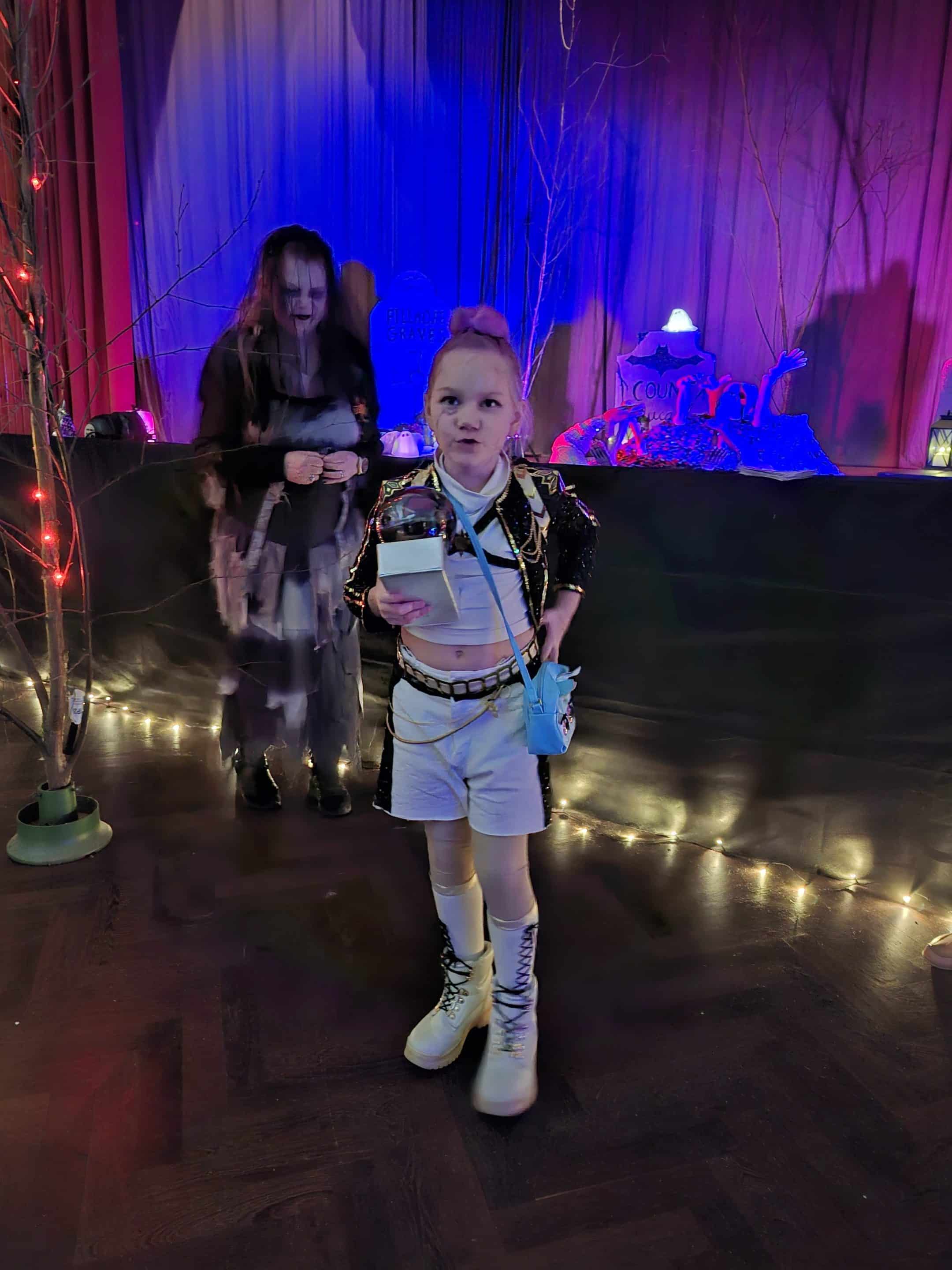 Pukeutuminen teeman mukaisesti oli tietysti olennainen osa onnistunutta tapahtumaa. Pukukilpailun voittajan valitseminen osoittautui haastavaksi tehtäväksi, mutta palkinnon vei lopulta 8-vuotias Frida Stenberg. Hänen hahmonsa Rumi on tuttu elokuvasta K-popparit demonien jäljillä.