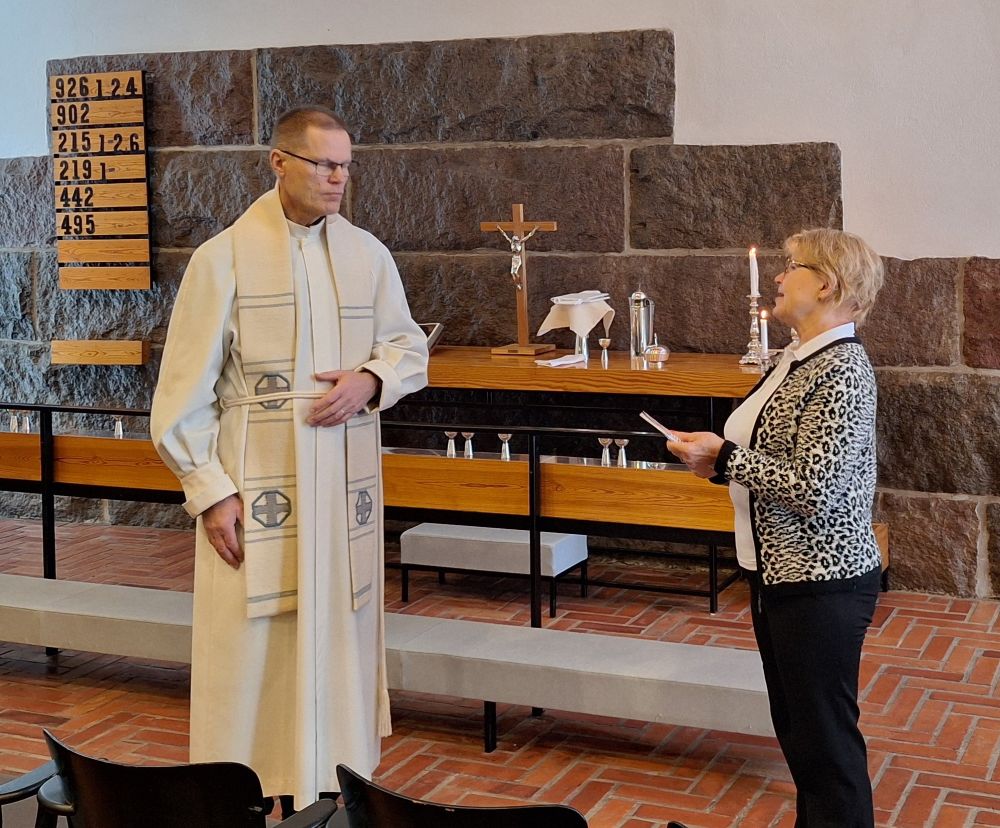 Messun jälkeen Vihtijärven Marttojen puheenjohtaja Eija S Jokinen muisti Pekkaa vihtijärveläisten puolesta uudella Marttojen luottoreseptikirjalla. Juotiin hyvät kirkkokahvit, kiittelimme Pekkaa pitkästä ja hyvästä työurasta Vihdin seurakunnassa ja tietysti juteltiin mukavia.