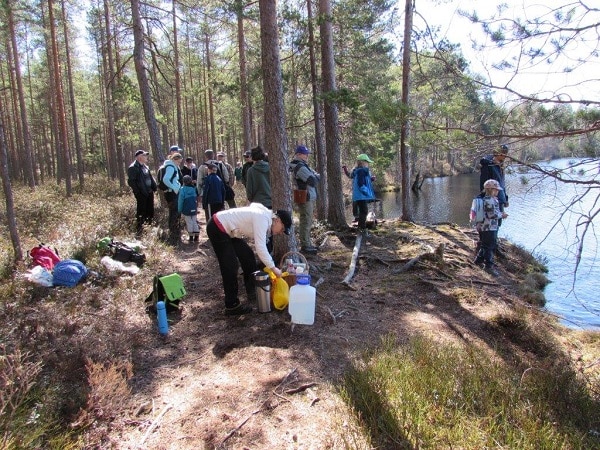 Kahvit ja voileivät maistuivat lammen rannalla. Veden ääreltä bongattiin mm. telkkiä.